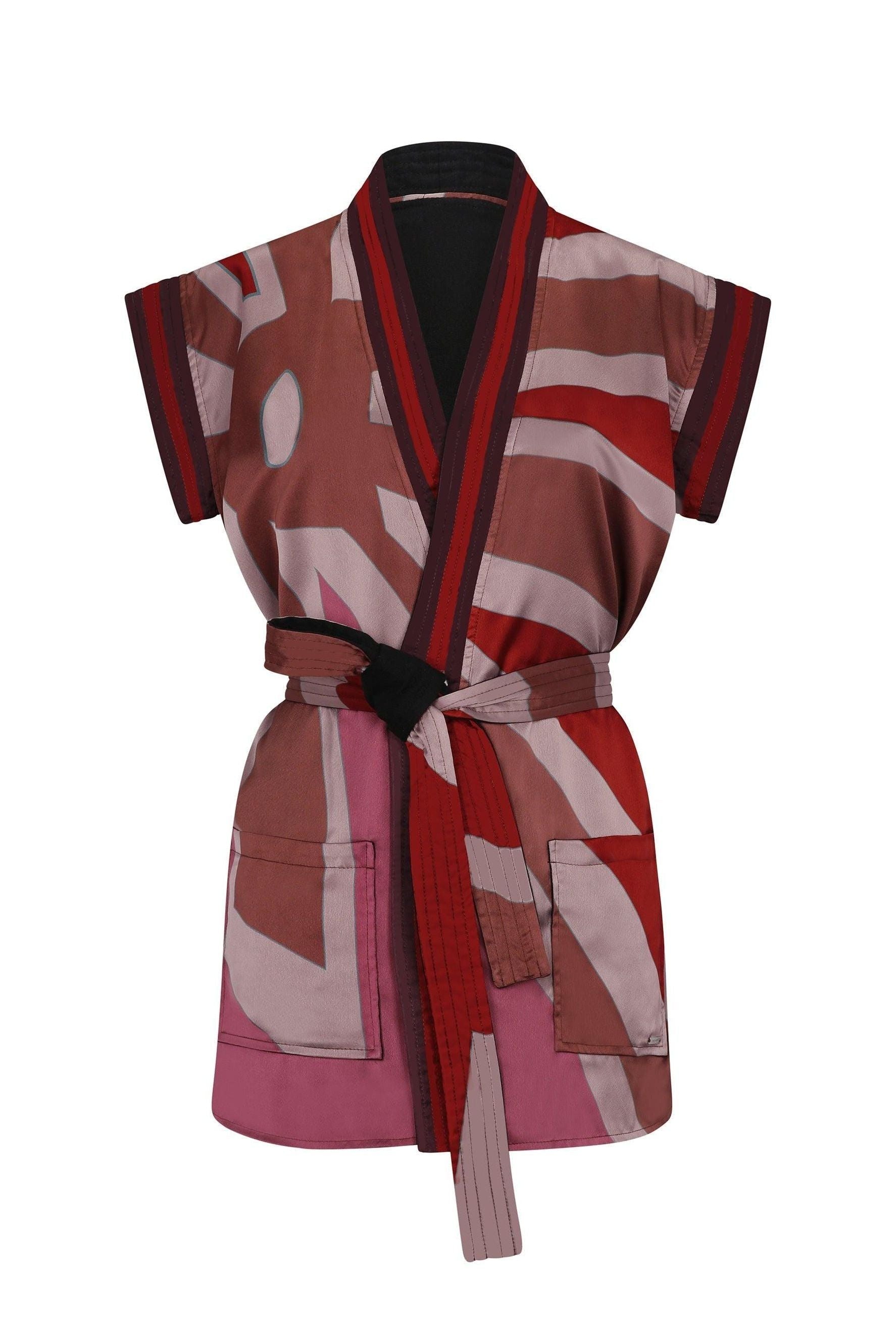 Balkanica's iconic reversible short kimonos feature a unique print and large front pockets.