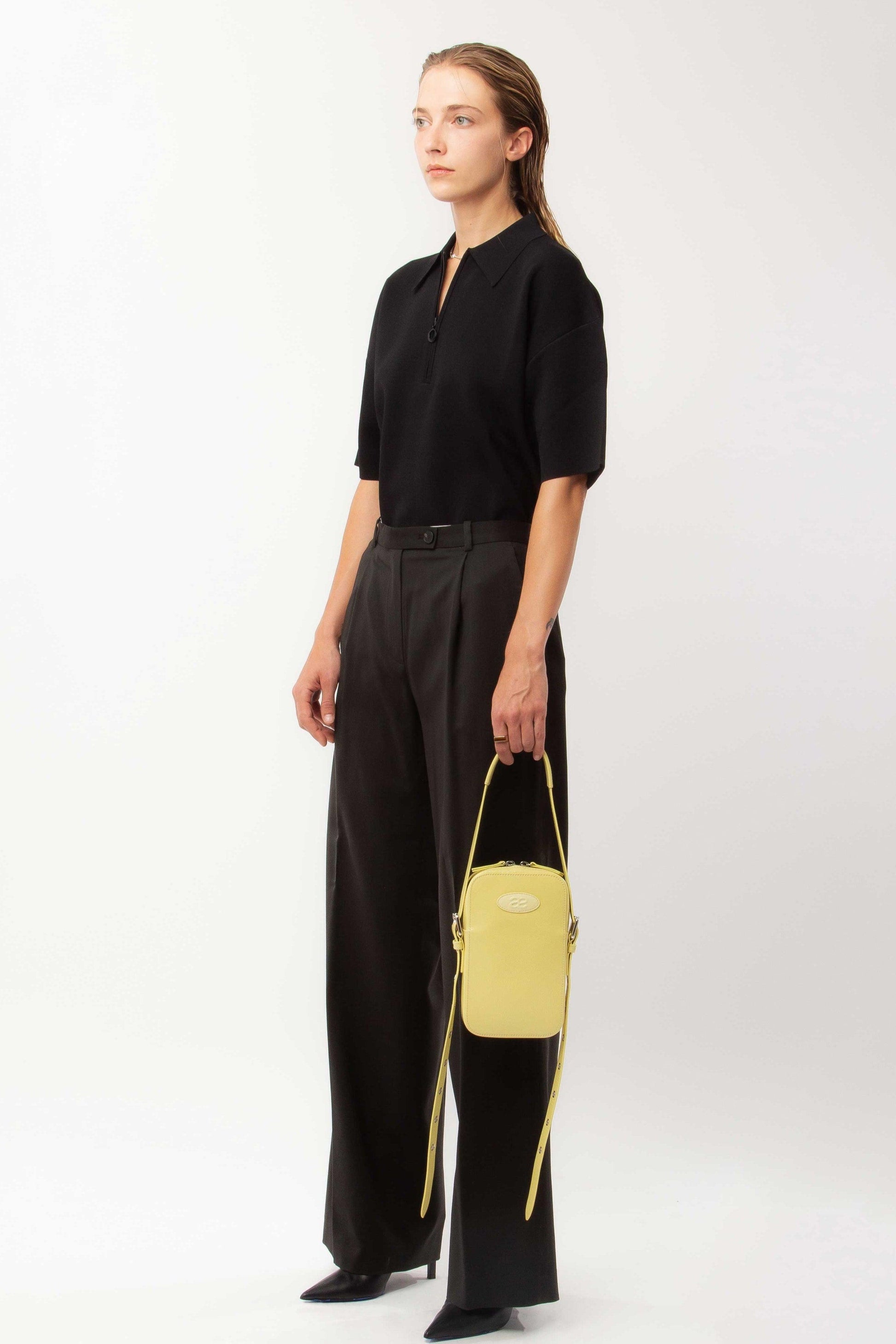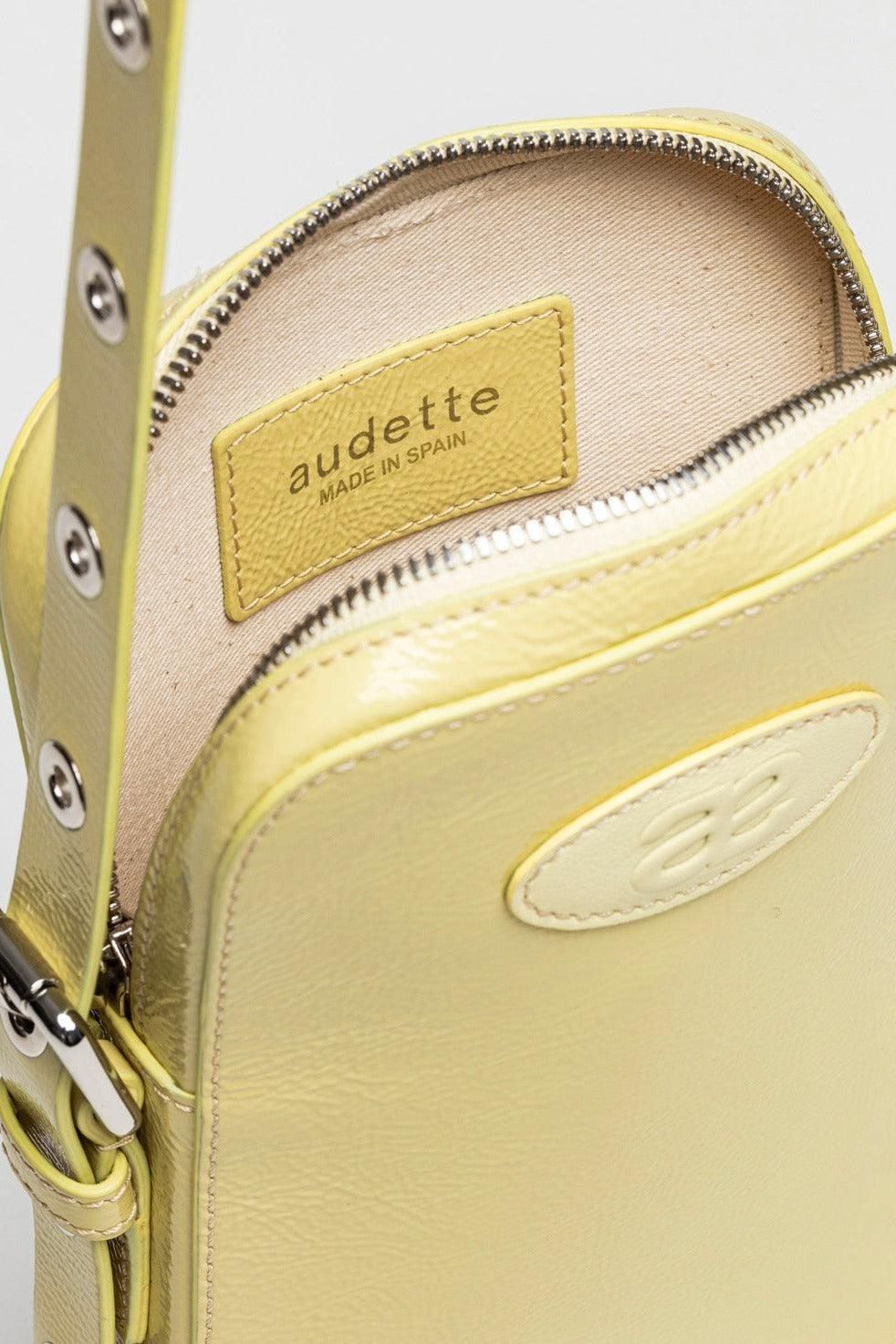 Modern "baise-en-ville" inspired bag with debossed logo and nail detailing. Compact design with adjustable strap for versatile wear—shoulder, crossbody, or hand carry.