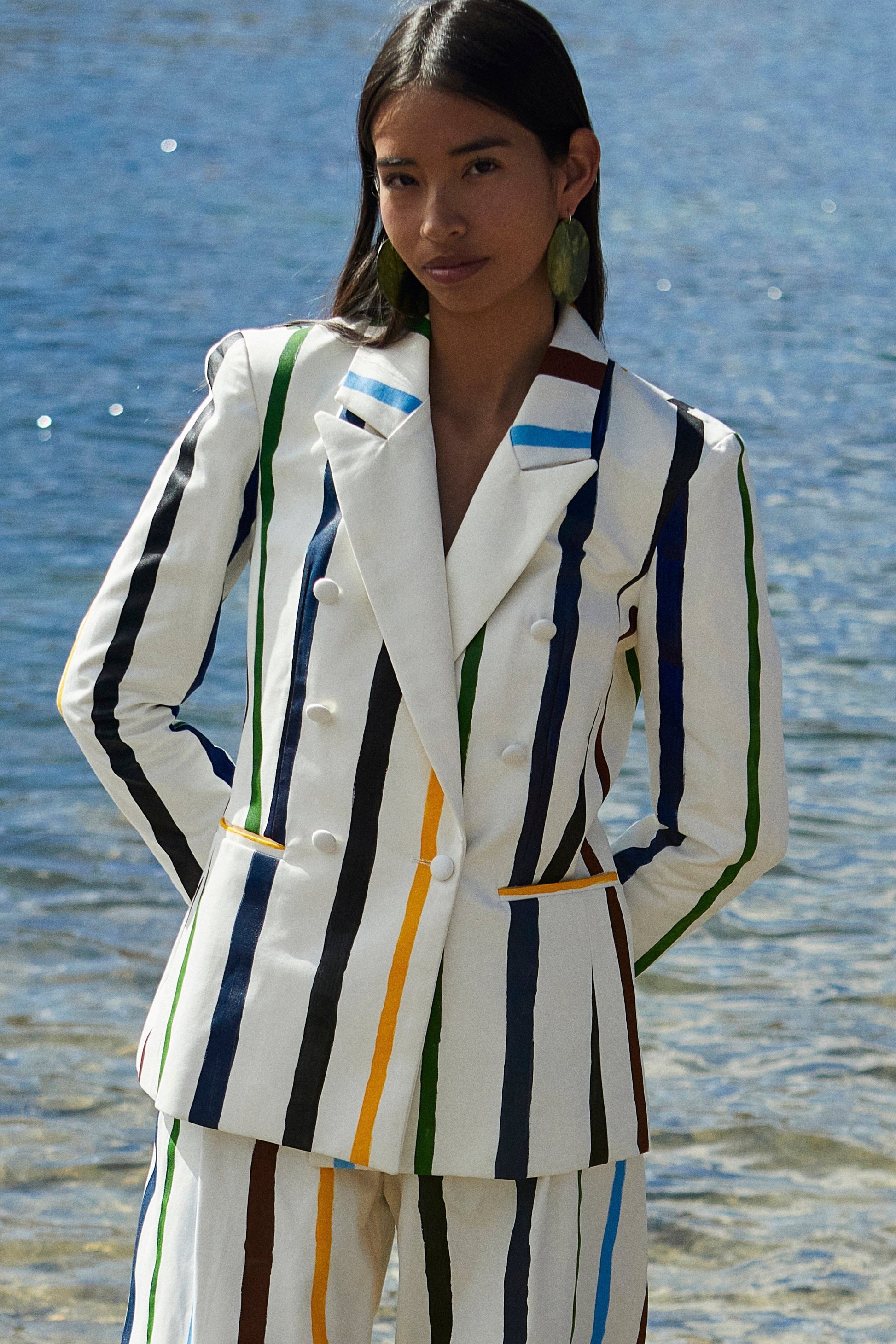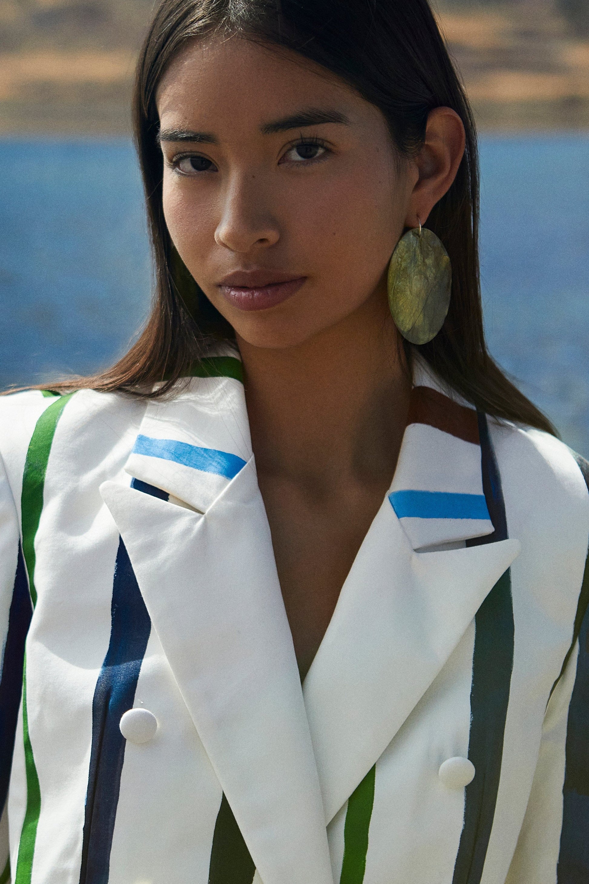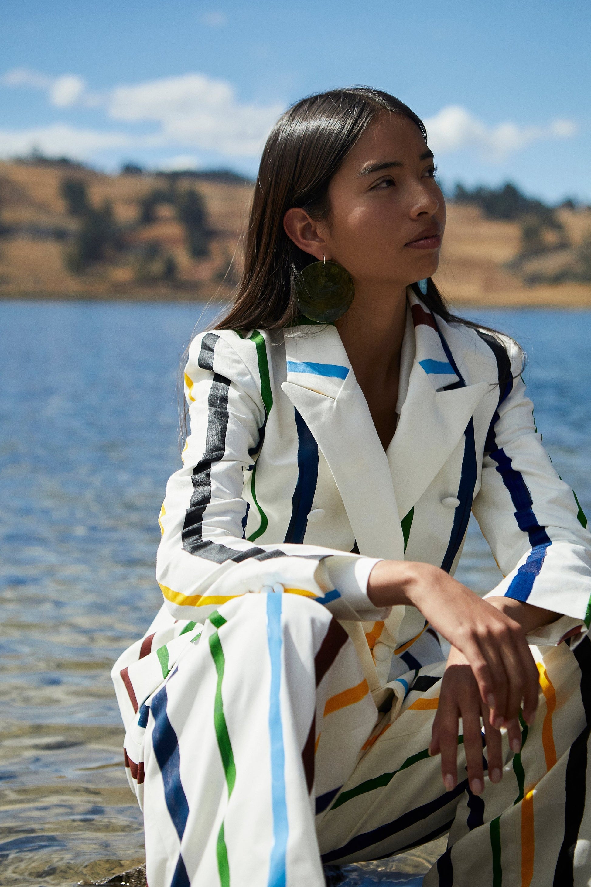 Lliclla refers to the colorful blanket that Andean women use to carry their children, symbolizing motherhood, childhood, and protection. In this case, it is embodied in this cotton blazer, adorned with the distinctive patterns of this garment, with details painted by hand.